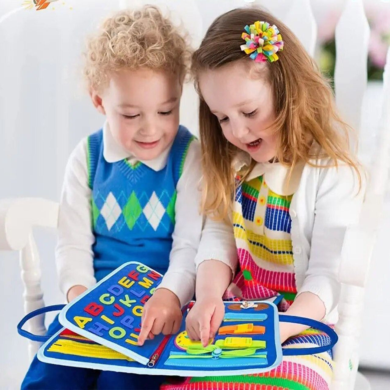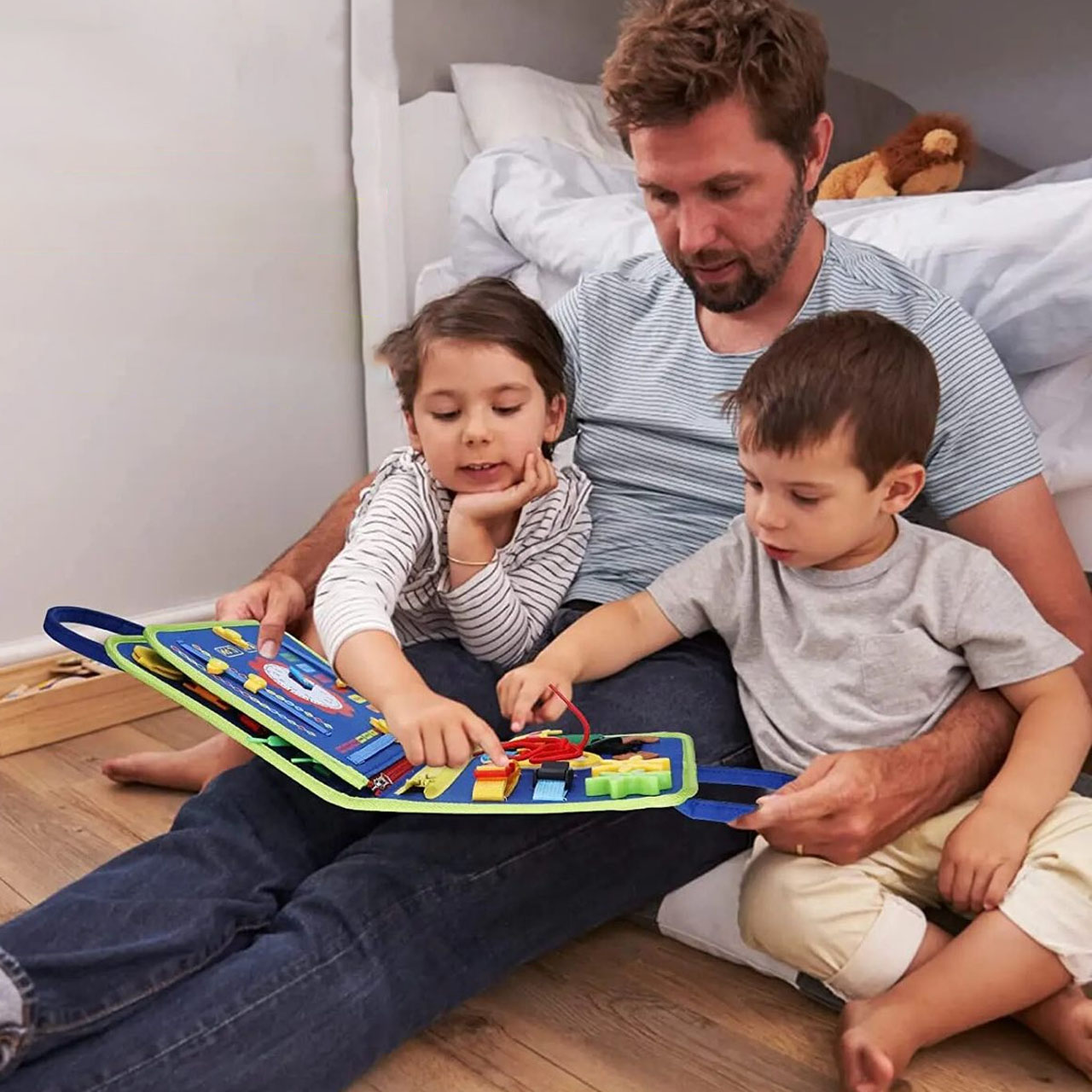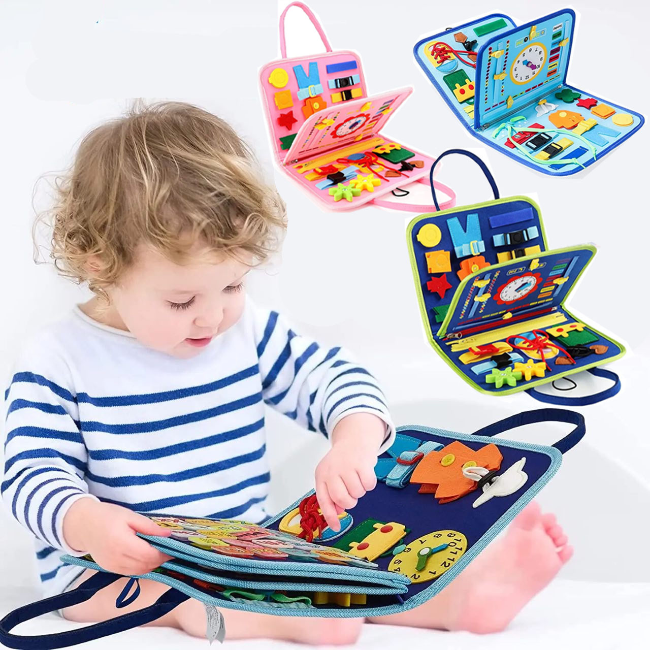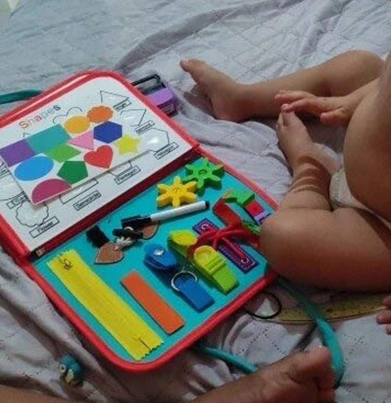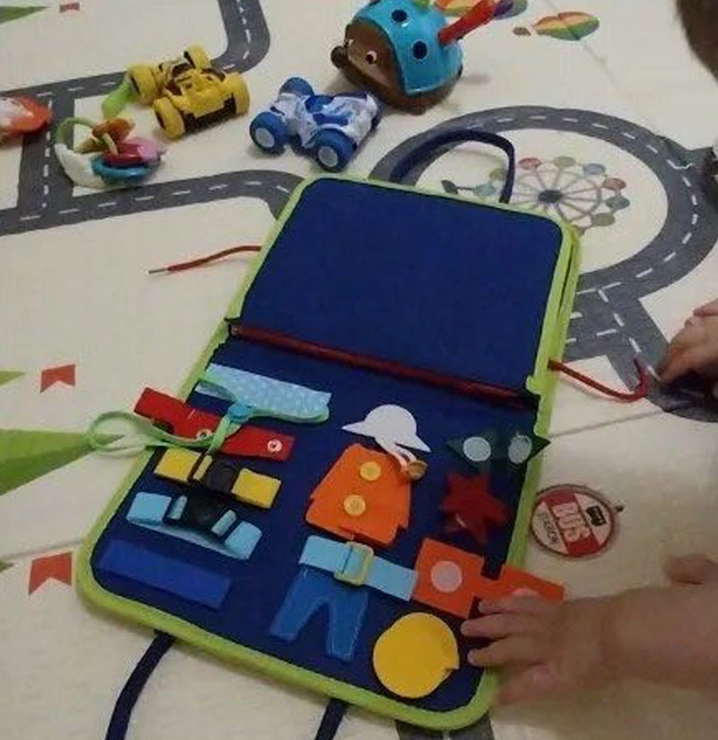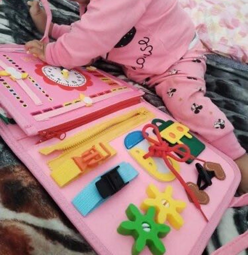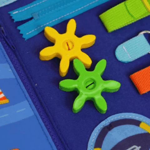 Мультисенсорне дослідження! Дивіться, як світяться очі Вашої дитини, коли вона досліджує різноманітні текстури, кольори, форми та дії в одному місці. Від засувів до ґудзиків, від блискавок до пряжок, наша іграшка пропонує різноманітні можливості, які сприяють тактильному та візуальному навчанню!